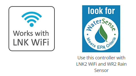 Make your controller SMART with EPA WaterSense certification by adding the LNK2 WiFi module and a WR2 rain sensor.