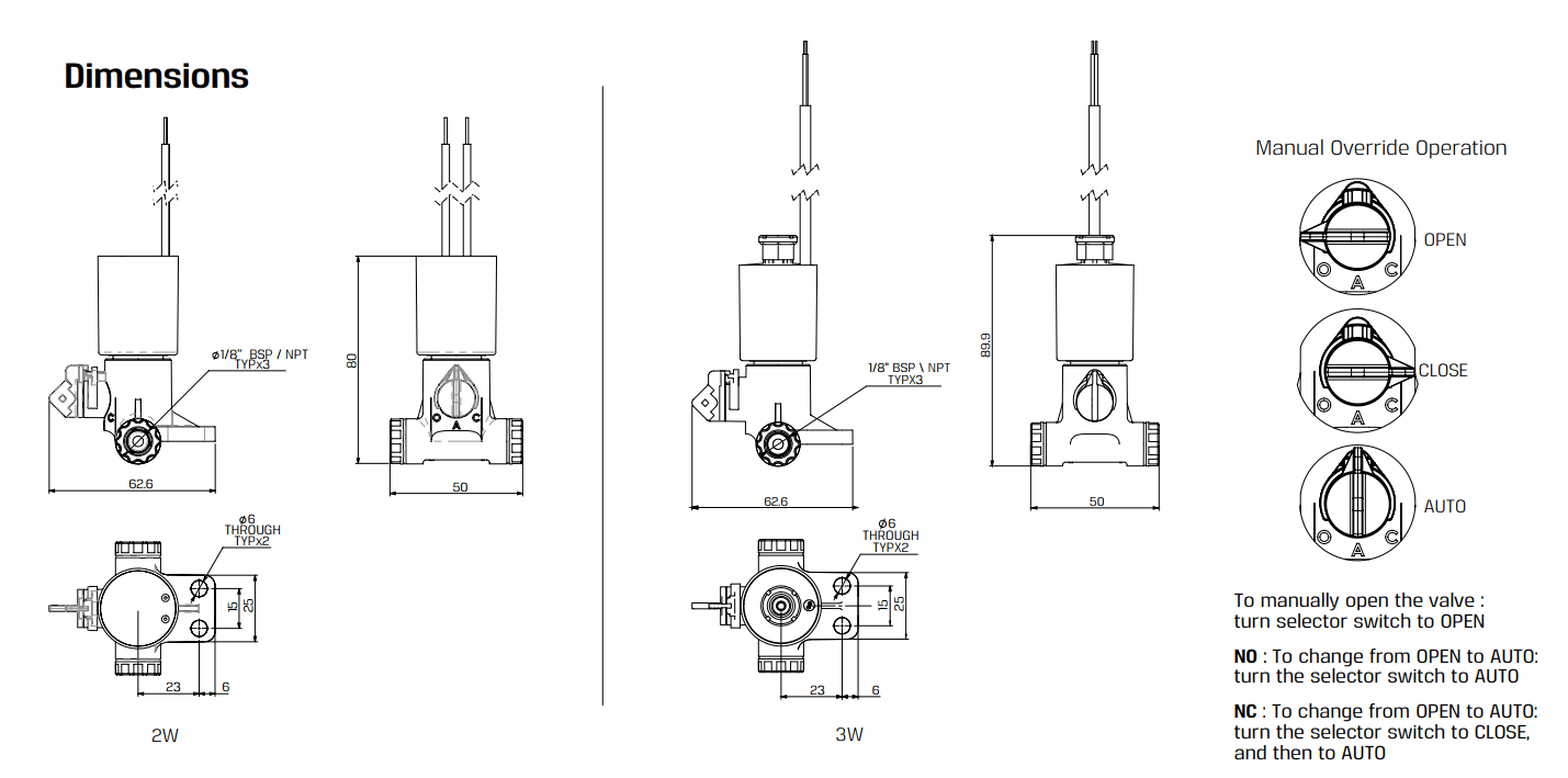 | Pressure Range | 2 Way : 10 bar 3 Way : 8 bar 3 Way : 10 bar |